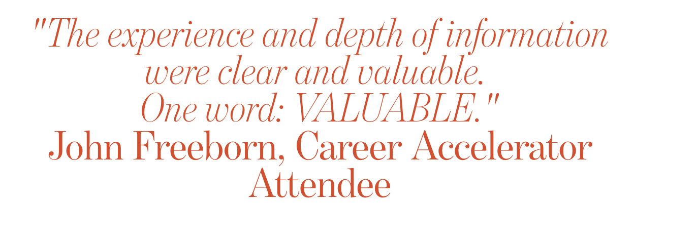 This is a six-week intensive designed to turn your career from a dream into a reality. No fluff—just 25+ years of recruiter expertise.